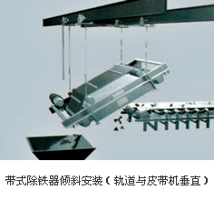 懸掛安裝方式分傾斜、水平兩種,它們均與除鐵器定位在輸料帶的某個位置工作有關(guān)。